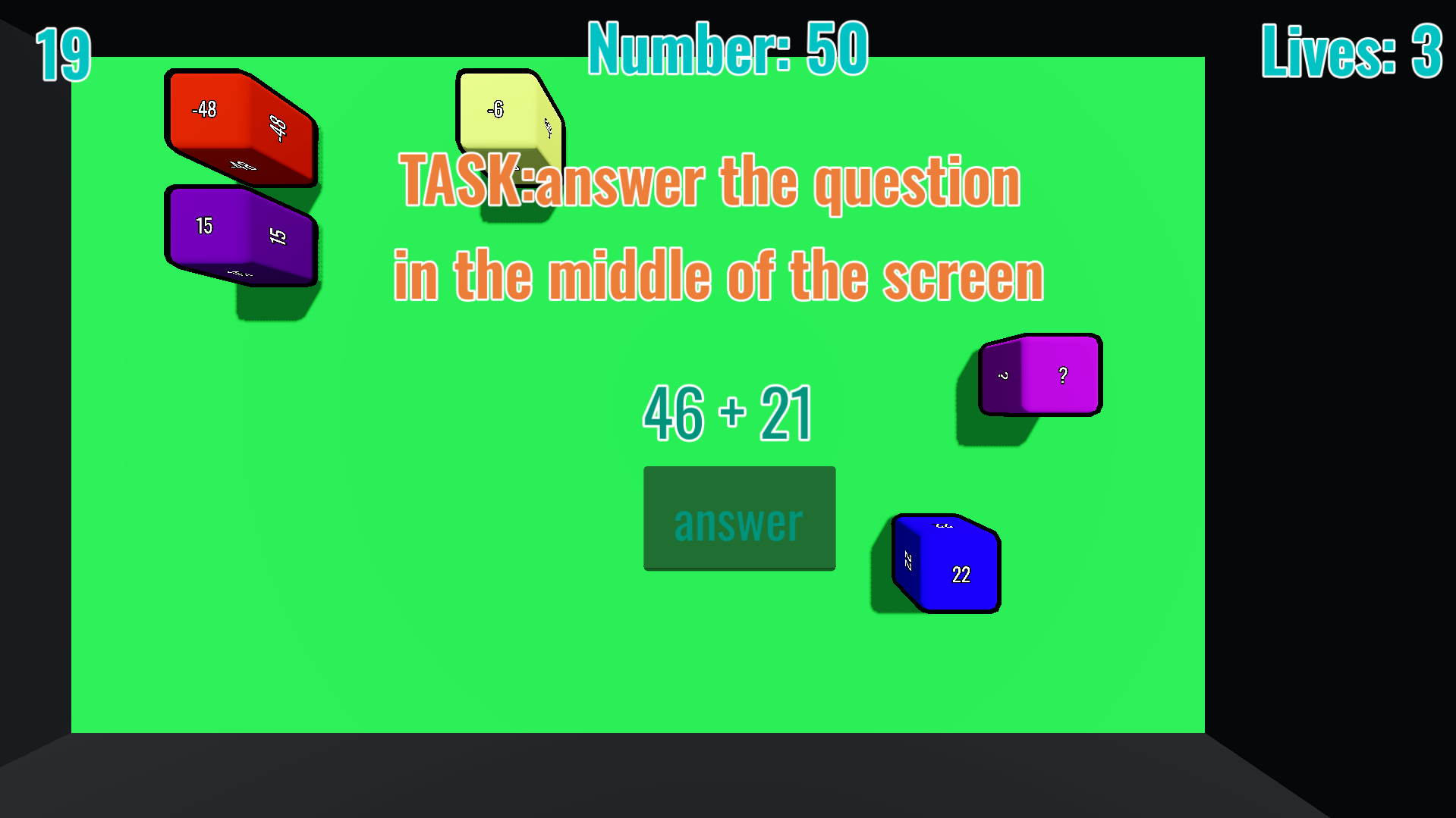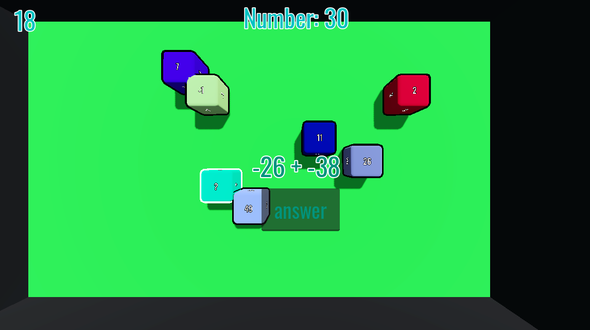 in the future i plan to add multiplication and division that makes the game less merge with whatever but more like i need to find the correct cube and do this in order witch is going to tie in on the Difficulty feature allowing the user to pick easy medium and hard maybe even extreme before they start making the user have an experience tied to them i also plan on adding a save system so you don't have to track your PB it auto does it and saves when you join back into the game.